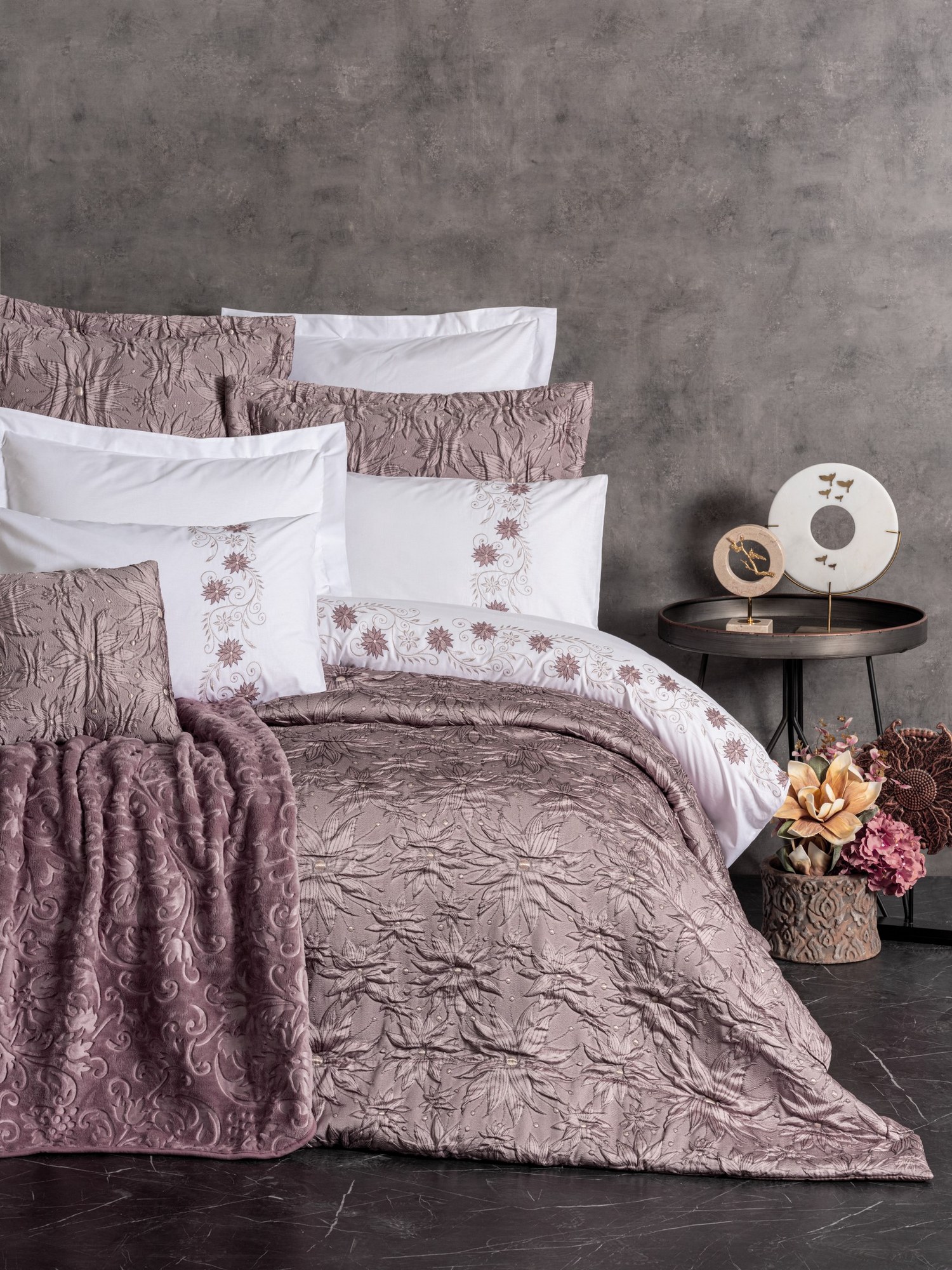 غطاء السرير: 260 × 250 سم غطاء وسادة ديكو: 50 × 70 + 5 سم (قطعتان) غطاء الوسادة: 40 × 40 سم (قطعة واحدة) البطانية: 220 × 240 سم غطاء اللحاف: 200 × 220 سم ملاءة مسطحة: 240 × 260 سم غطاء الوسادة: 50 × 70 + 5 سم (قطعتان)